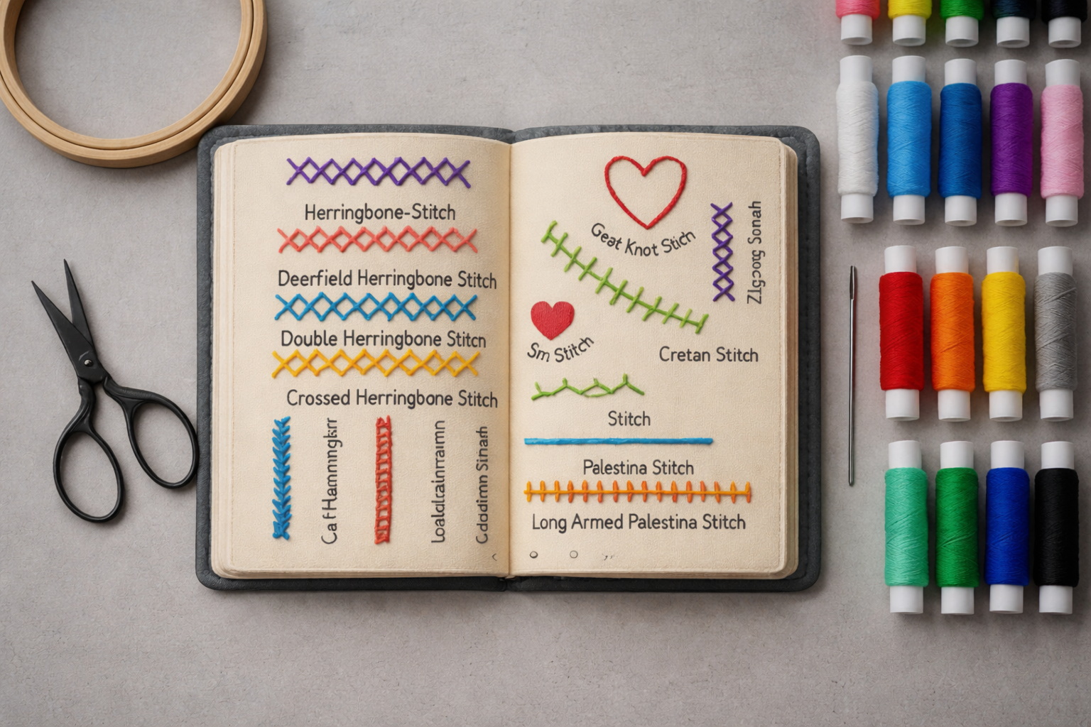 Each embroidery stitch book comes as a complete set. Inside every kit you’ll find: 1x fabric-page stitch book, 1x needle, 1x threader, 1x pair of embroidery scissors, and a full set of colorful threads.